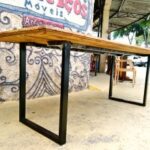 Mesa Rústica De Madeira Maciça Industrial Com Pés De Ferro